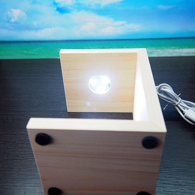 ・天然のヒノキで作ったLED付き台座です。