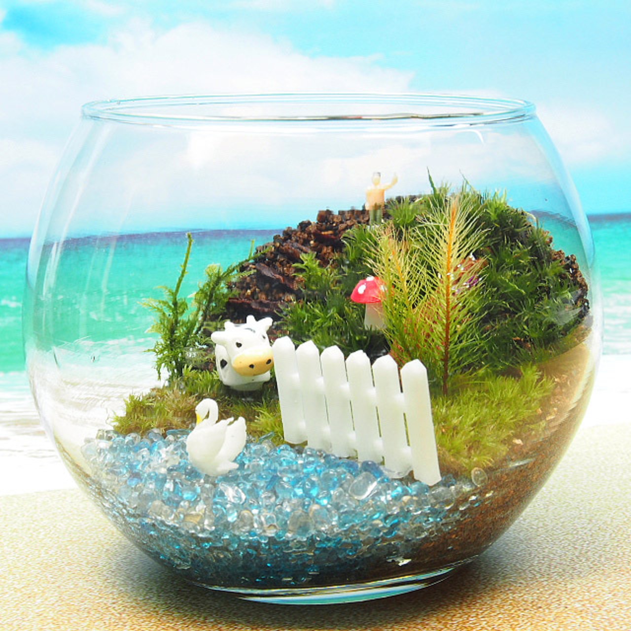 お手軽な 【苔テラリウム・手作りキット一式】牛と白鳥の湖です。