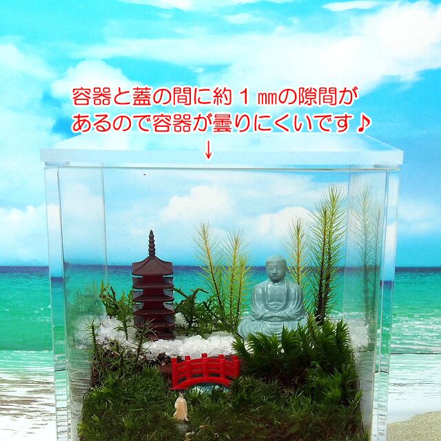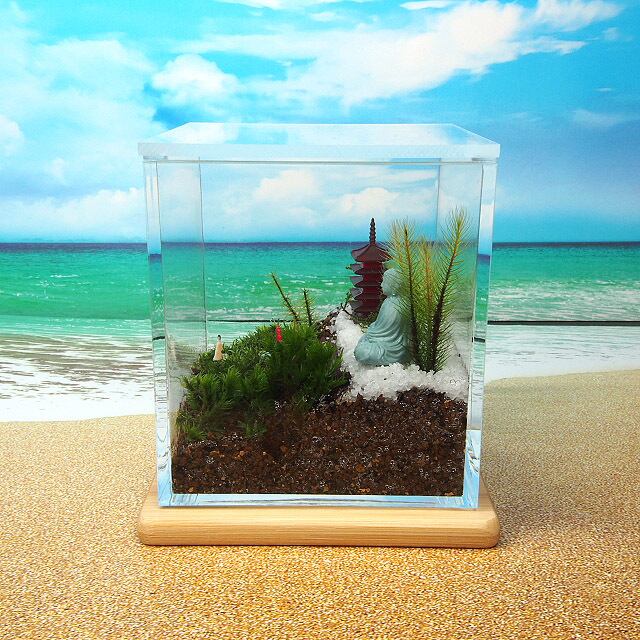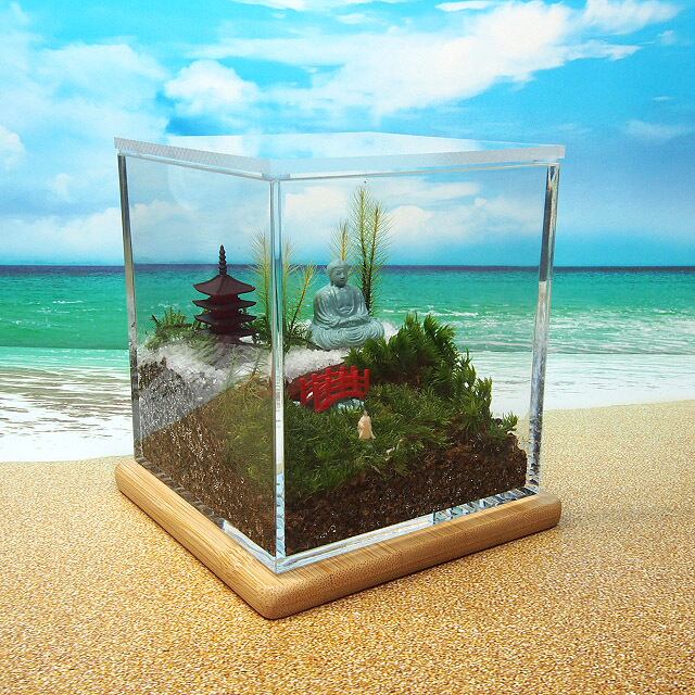 お手軽な 大仏と五重塔【苔テラリウム・手作りキット一式】キューブです。