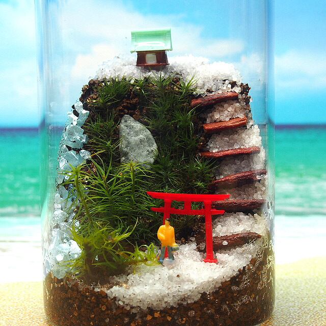 苔神社の苔テラリウムキット。大自然の中にいるような、癒しの空間を手軽に作り出せます。